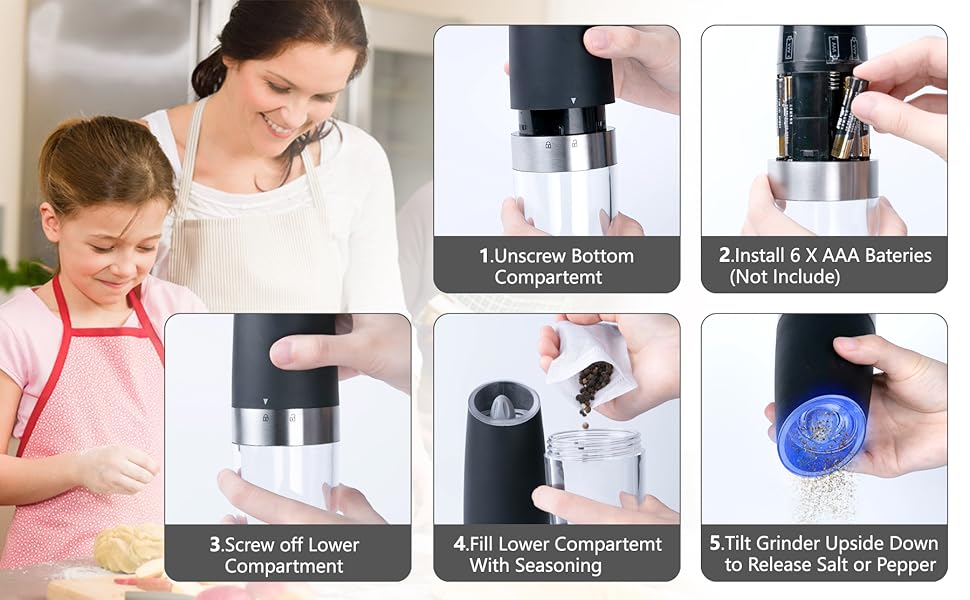 Automatic Operation: The built-in gravity switch turns the grinder on when tilted, and off when placed upright, making seasoning quick and easy.